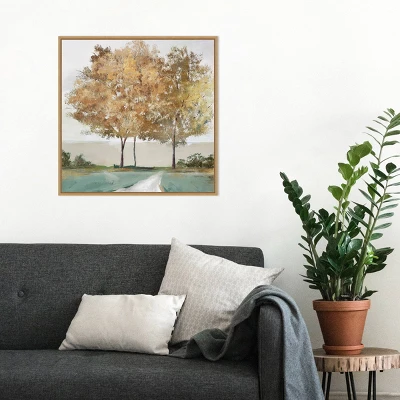 ART DESCRIPTION: Lovely trees line the path in this painting, making you want to walk next to them to see the leaves up close. The complementary colors of orange and blue create beautiful contrasts throughout this piece of art. This Amanti Art canvas art print was created by Isabelle Z and printed by Amanti Art in Madison WI. The canvas is stretched by hand and finished with a float frame. Individually made using traditional custom framing techniques, it has the quality you would expect from your local frame shop. Because of our attention to detail and focus on artistry, architects, interior designers, and homeowners alike choose this framed canvas artwork to create beautiful living spaces.