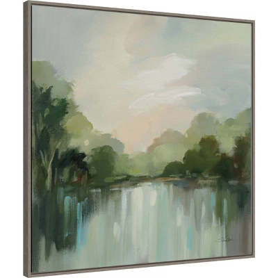 ART DESCRIPTION: A cool breeze wafts over this private lake, rippling the water and jostling the reflections of dozens of trees. Overhead, fluffy clouds play in beams of sunlight, bringing warmth and inviting you to wade into the water. This Amanti Art canvas art print was created by Silvia Vassileva and printed by Amanti Art in Madison WI. The canvas is stretched by hand and finished with a float frame. Individually made using traditional custom framing techniques, it has the quality you would expect from your local frame shop. Because of our attention to detail and focus on artistry, architects, interior designers, and homeowners alike choose this framed canvas artwork to create beautiful living spaces.
