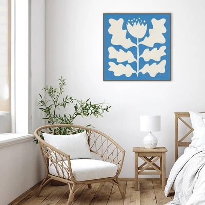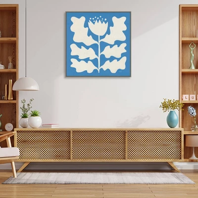 ART DESCRIPTION: This lovely bright piece features a modern take on a single cornflower, depicted in solid white against a bright blue background. Clean lines, exaggerated leaves, and whimsical dots of pollen floating above give this artwork a fun and playful feel. This Amanti Art canvas art print was created by Moira Hershey and printed by Amanti Art in Madison WI. The canvas is stretched by hand and finished with a float frame. Individually made using traditional custom framing techniques, it has the quality you would expect from your local frame shop. Because of our attention to detail and focus on artistry, architects, interior designers, and homeowners alike choose this framed canvas artwork to create beautiful living spaces.