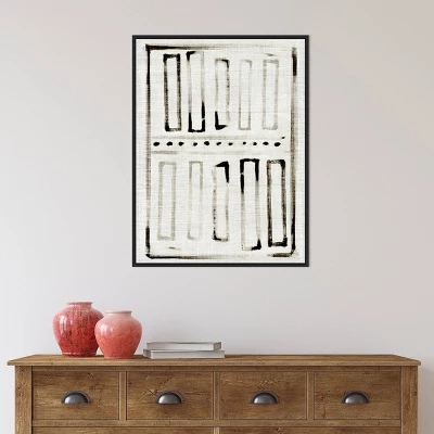 Discover the intersection of ancient craft and modern design with the Batik Block Flag I by Jennifer Paxton Parker. This Amanti Art collection piece features thick ink blots and geometric patterns on a soft beige backdrop, mimicking the texture of handcrafted fabric. The intentional pooling of ink creates a soulful, artifact-like quality that brings warmth and depth to any contemporary living space.