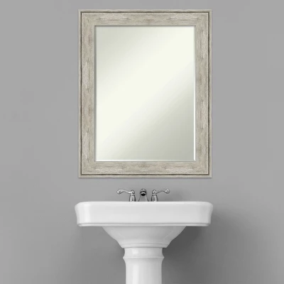 Elevate your home aesthetic with the Amanti Art Petite Bevel bathroom mirror, a masterpiece of traditional custom framing. This Crackled Metallic piece features a sophisticated distressed silver and champagne panel design, accented by a raised outer edge and a unique metallic finish. Crafted with the precision of a local frame shop, this mirror is the choice of architects and interior designers for creating upscale, luminous living spaces.