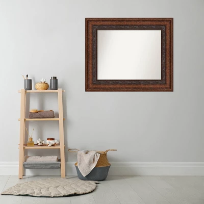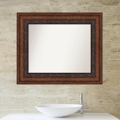 Give your bathroom a sophisticated finishing touch with this exquisitely crafted wall mirror from Amanti Art. Individually made using traditional custom framing techniques, this mirror offers the high-end quality of a professional frame shop. Its burnished bronze finish and intricate profile make it a preferred choice for architects and interior designers seeking to create elegant, timeless living spaces.