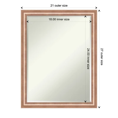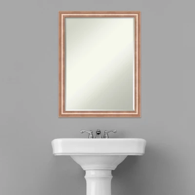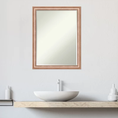 Elevate your bathroom or living space with the Amanti Art Harmony Rose Gold mirror. This 100% real wood frame offers a stunning aesthetic, featuring a vibrant rose gold profile contrasted by a sleek black outer side. Designed with a raised outer edge that elegantly scoops inward, this piece is individually handcrafted using traditional custom framing techniques to ensure gallery-quality results that professionals and homeowners trust.