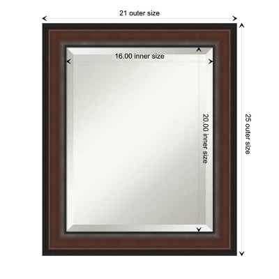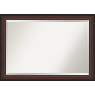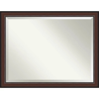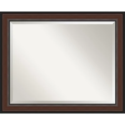Elevate your home or office with the sophisticated Amanti Art Harvard Walnut Beveled Framed Wall Mirror. This exquisite piece from the Harvard Walnut collection features an angled profile with a slightly lifted outer ridge, showcasing a deep walnut color accentuated by fine grain lines and dark, refined edges. Each mirror is individually handcrafted using traditional custom framing techniques to ensure the premium quality and value you expect from a professional frame shop.