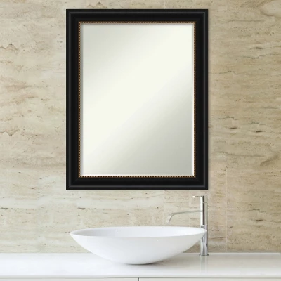 Enhance your home with the sophisticated Amanti Art Manhattan Black Petite Bevel bathroom mirror. This handcrafted piece brings the luxury of a professional frame shop directly to your bathroom, featuring an elegant scooped black frame with a delicate gold accent.