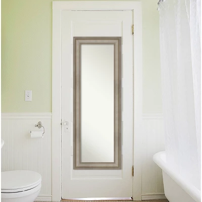 Elevate your interior with the Amanti Art Mezzanine Antique Silver full-length mirror, a masterpiece of traditional custom framing. This 100% real wood mirror offers a sophisticated alternative to standard door mirrors by eliminating unsightly over-the-door brackets in favor of a clean, artisan-finished look. Whether mounted on a bedroom door or used as a statement piece on your wall, its premium construction reflects the quality of a professional frame shop, bringing designer-level artistry into your home.